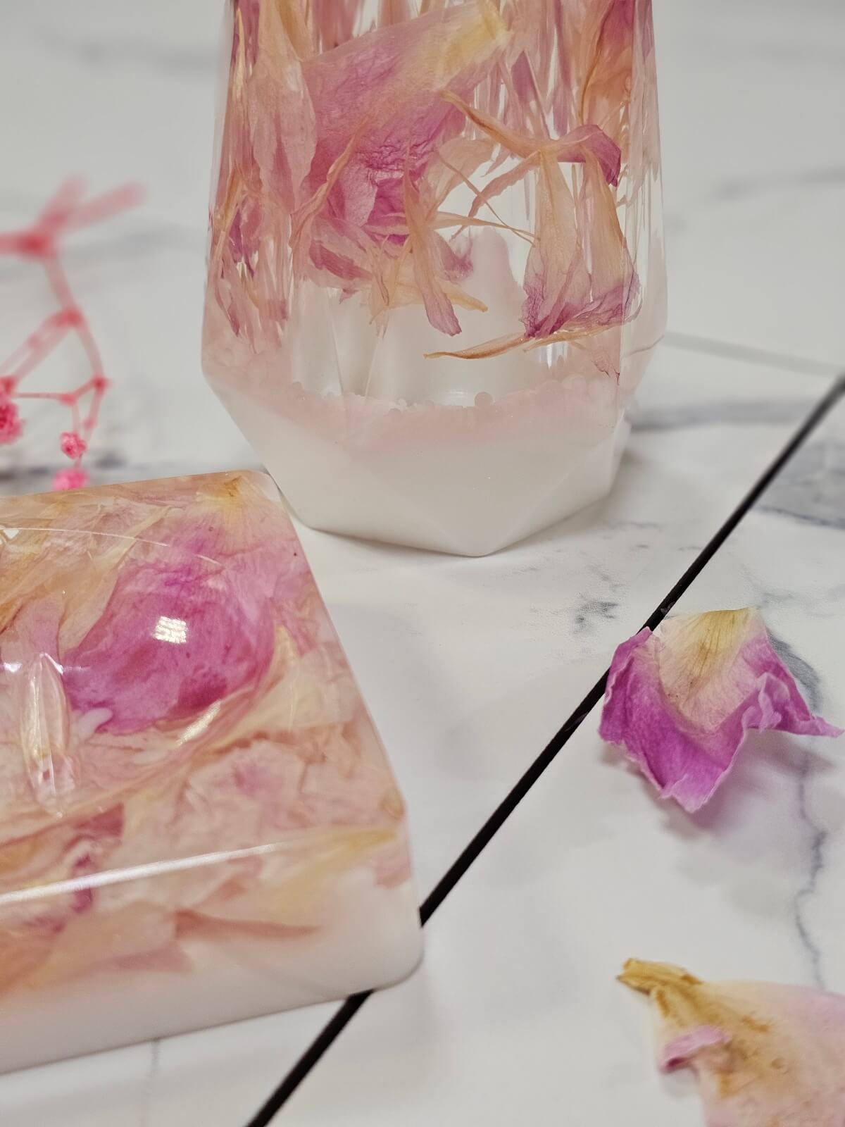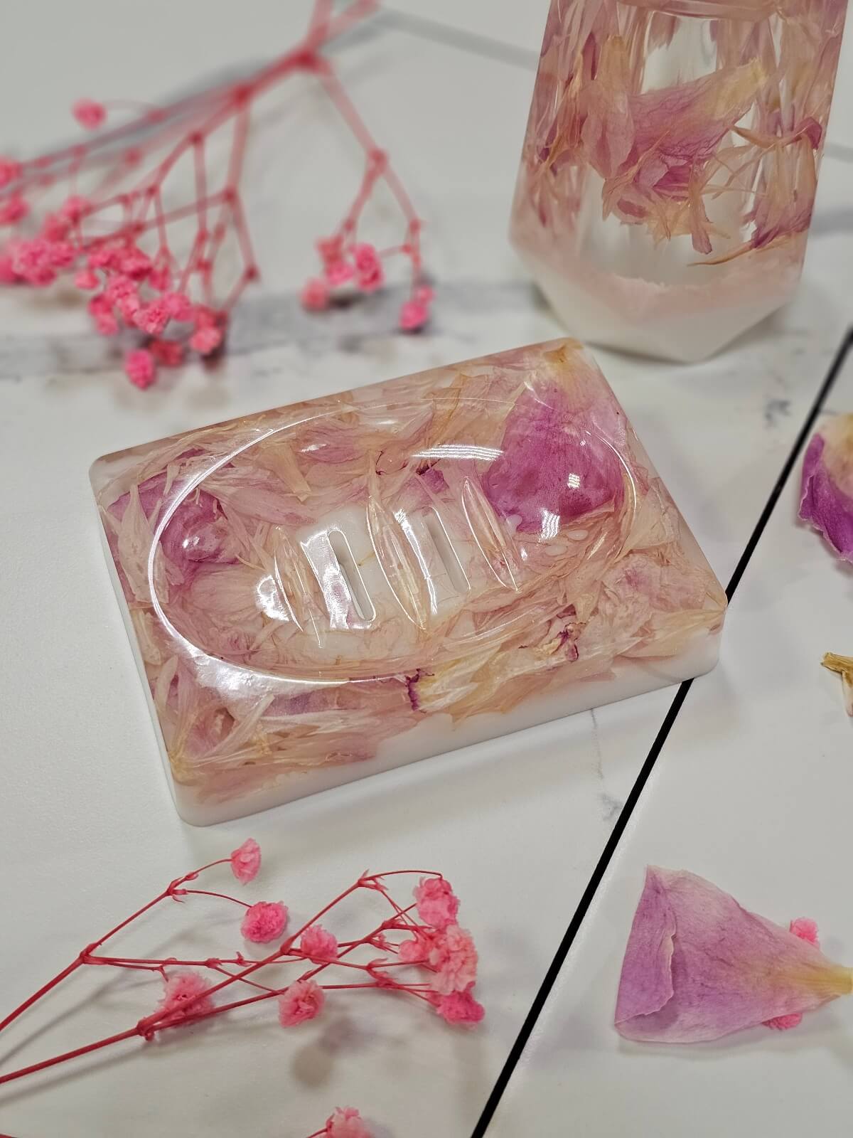 Комплект для ванной из эпоксидной смолы с листьями пиона