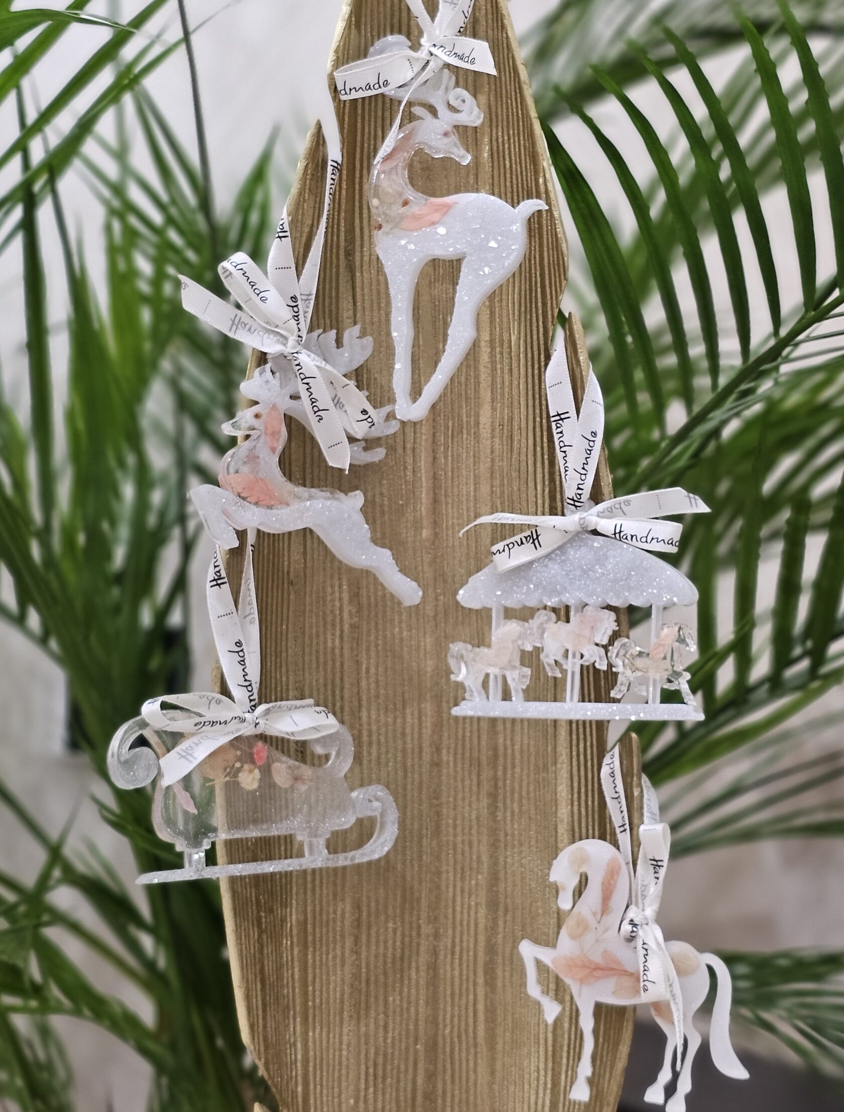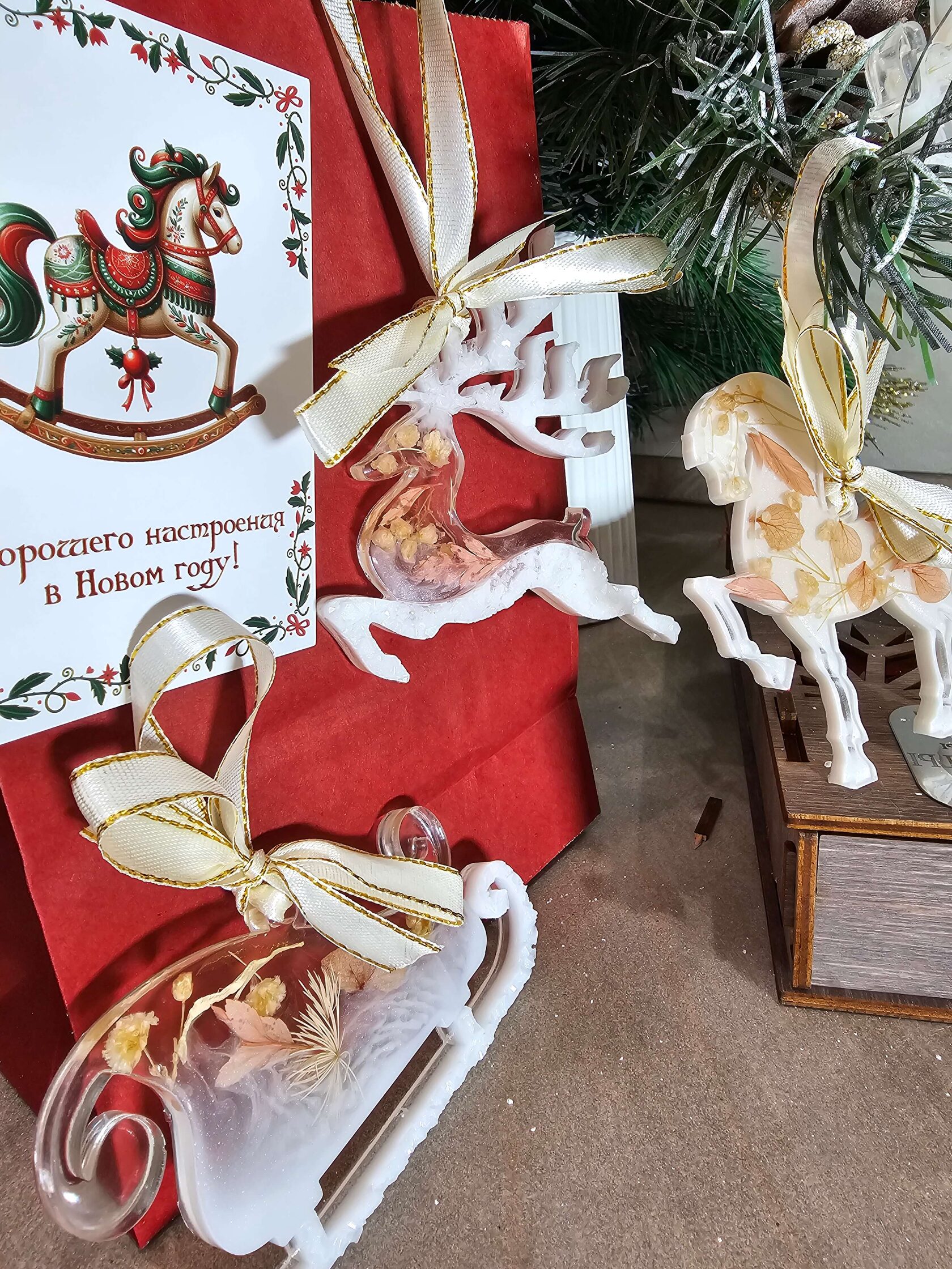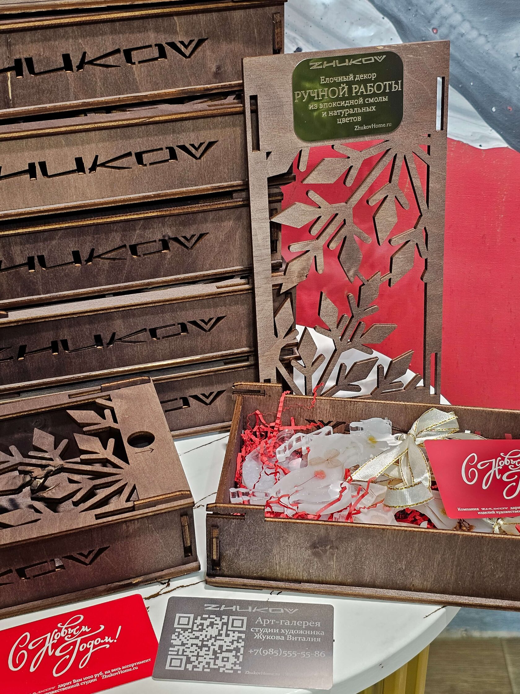 Настоящие цветы в смоле — сохранившие свою нежность Ручная работа — каждая игрушка имеет свой характер и историю Долговечность — не бьются, не выцветают, хранят память десятилетиями Эксклюзивные формы — классические шары, изящные звезды, волшебные ёлочки Полная комплектация — подарочная упаковка входит в набор