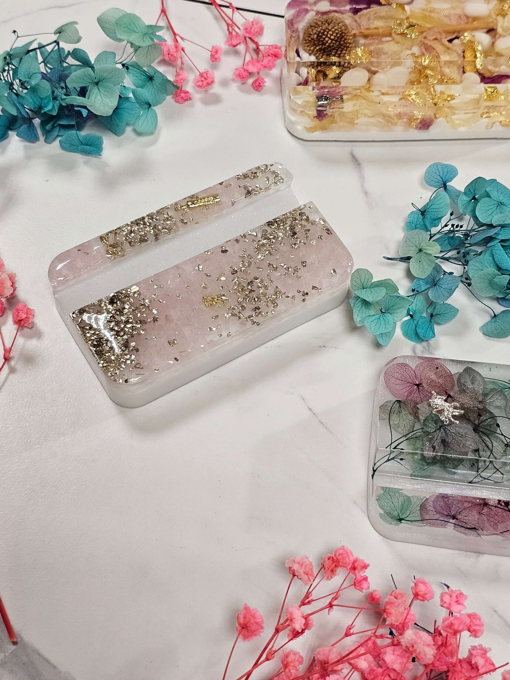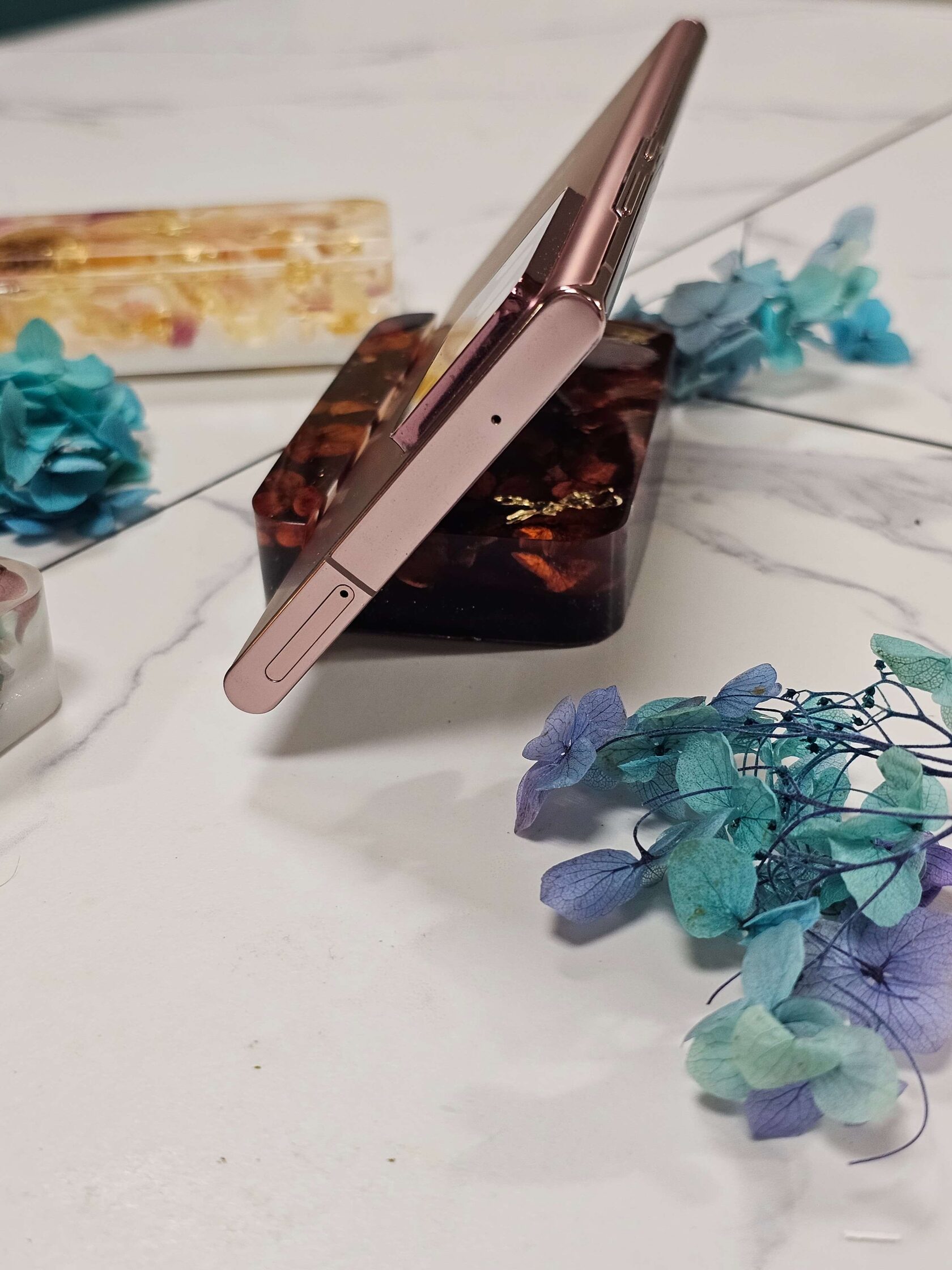 ХАРАКТЕРИСТИКИ: •Материал: эпоксидная смола премиум-класса + натуральные цветы •Размер: оптимальный для размещения и визиток, и телефона •Угол наклона: продуман для удобного просмотра экрана •Уход: просто протирать сухой мягкой тканью